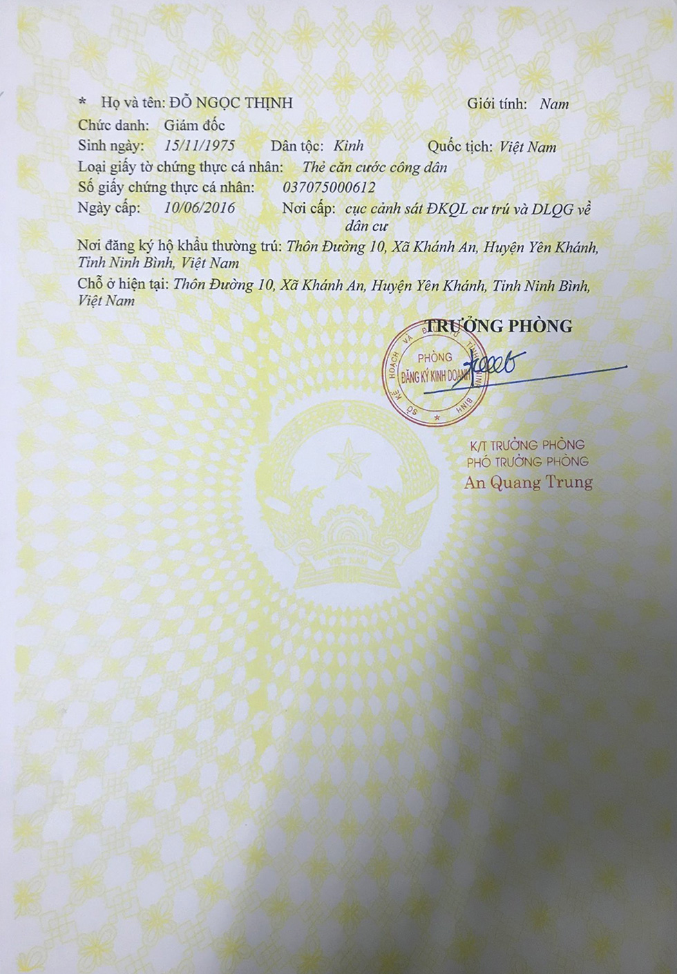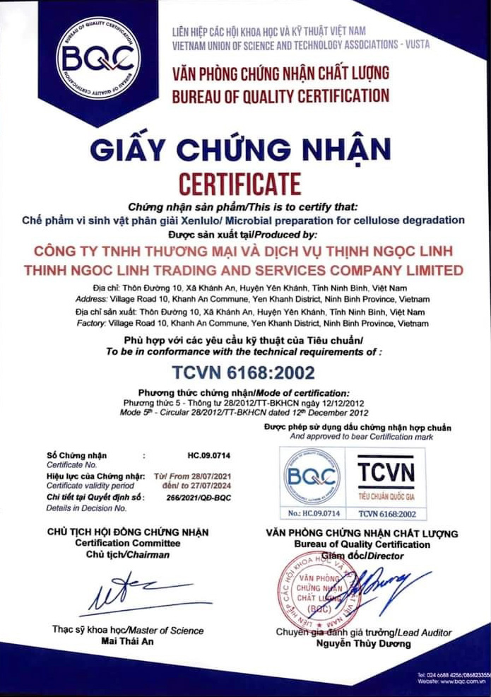 - Giấy phép đăng ký kinh doanh do sở kế hoạch và đầu tư tỉnh Ninh Bình cấp.